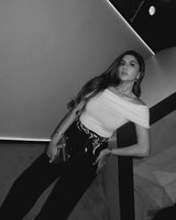 Crafted in pure metal with fine fabric lining, leather details, and a full metal handle along with a leather detachable strap to be able to carry it handsfree, this piece is equipped for all. A reflective finished top and base, this bag was crafted to be the talk of the town.