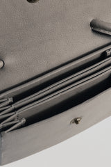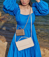 The adjustable strap lets you use the bag in three ways- crossbody, top handle and a sling bag. The bag features multiple expandable compartments with a buttoned closure.
