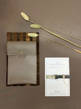 These rakhis are handcrafted in genuine leather with metal hardware finish and comes with an embossed initialised pouch to keep it tucked away safely.