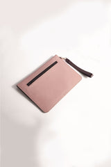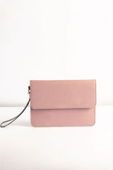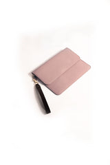 This organizer/sleeve helps keep your documents, laptops, iPad or storage convenient. Or just a holdall accessory for any outfit! This Mini sleeve features a magnetic closure for easy functioning, a wristlet making it convenient to hold and a leather zipper adding the right edginess.