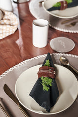With a gold hardware buckle design, this is the ultra chic deisgn we need to glam up any dinner setting. These statement Rings will light up all the dining areas as quck as the snap of a finger. Hand crafted with imitation leather, with golden hardware with and a soft body that will keep your napkins safe.