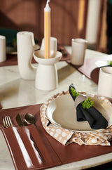 With a triple ringed design, this is the ultra classic deisgn we all need in our homes. These statement Rings will light up all the dining areas as quck as the snap of a finger. Hand crafted with imitation leather, with golden hardware with and a soft body that will keep your napkins safe.