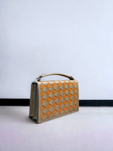 A perfect pick to carry it as a crossbody during the day and the top handle makes it your go-to evening bag. Woven together with two different colours of leather, it composed of just enough details to make you never want to drop it. Handcrafted in pure leather, the bag features magnetic closures, two compartments and a zipper pocket. It comes a detachable strap.