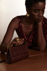 WOVEN FOLDOVER CLUTCH Carmine Red