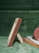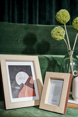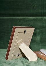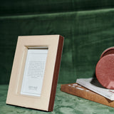 Timeless leather photo frame with wooden edges, adding a touch of welcoming feeling to your cherished memories.