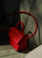 A wonder of its own, this mini bag is handcrafted with 20 individual pieces of leather and a lot of precision. The adjustable strap lets you use the bag in three ways- crossbody, top handle and a sling bag. The bag features multiple expandable compartments with a buttoned closure.