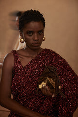 With a moulded 'U' shaped metal and a drawstring leather bag inside, this 'potli' will charm its way in your closet to work with everything. Comes with a detachable thin strap that is adjustable with a buckle to make it an ease for everyone.