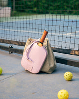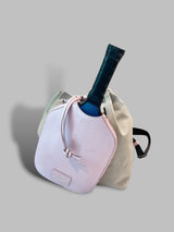 Attached at the front is a zipped racquet case crafted in smooth leather—structured, secure, and designed to keep your paddle protected while on the move. The strap is made in leather and extends into a contrast nylon twill tape for comfort and flexibility, finished with a discreet coin pocket stitched in for life’s little essentials.