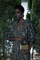 Crafted in pure metal with a fine fabric lining, leather quilted flap detail, and a full metal chain to be able to carry it handsfree, this piece is equipped for all. A matte finished top and reflective base, this bag was crafted to be the talk of the town.