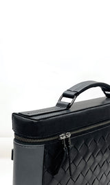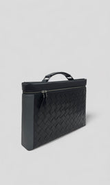 Exquisitely crafted leather laptop bag, designed to safeguard your device while exuding effortless style. Embracing both form and function, it boasts a generously spacious main compartment along with a secure zippered laptop compartment, ensuring optimal protection. The comfortable top handle allows for easy carrying, while the intricate weave detailing on the front and contrasting sides add a touch of sophistication that sets this bag apart.